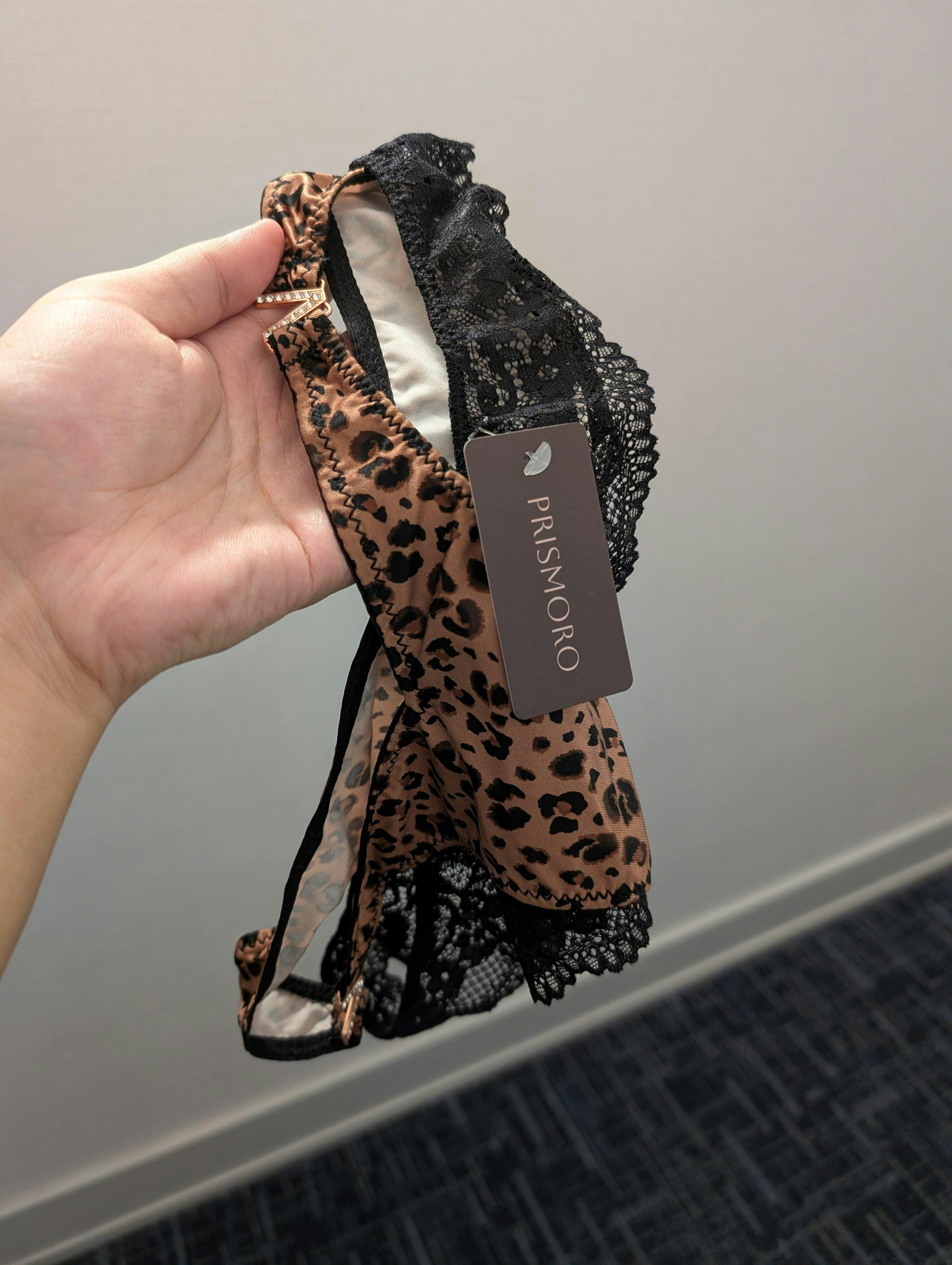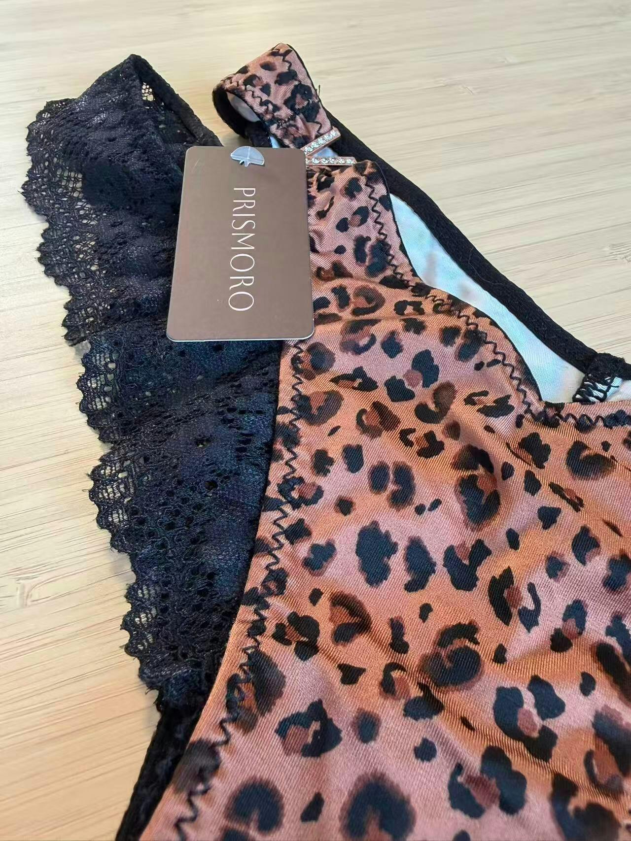 Fierce and feminine — Prismoro’s leopard lace trim bikini panty blends smooth satin with sheer black lace and side cutouts for a confident, sultry look. Soft, breathable, and designed to flatter every curve with bold elegance.